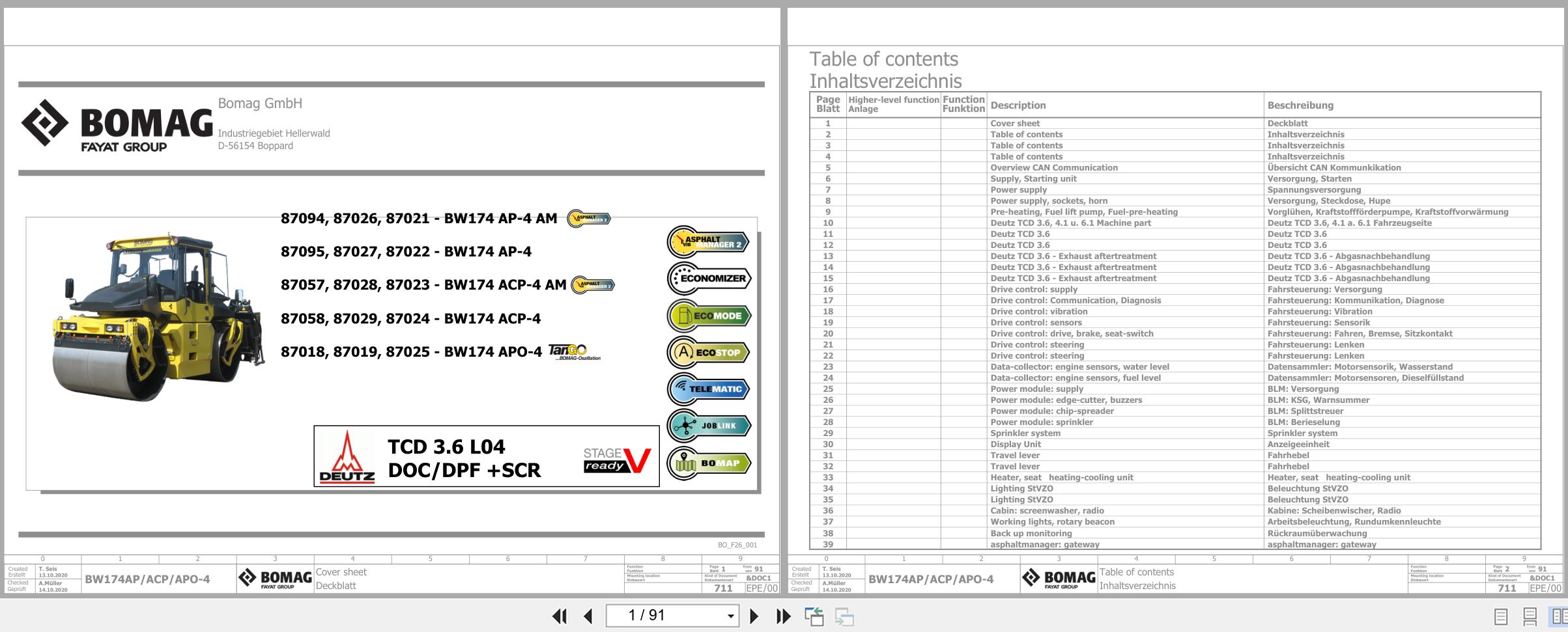 Bomag Sanitary Landfill Compactor BC 601 RB BC 601 RS Instructions for Repair 1992 00819144 (458 Pages)