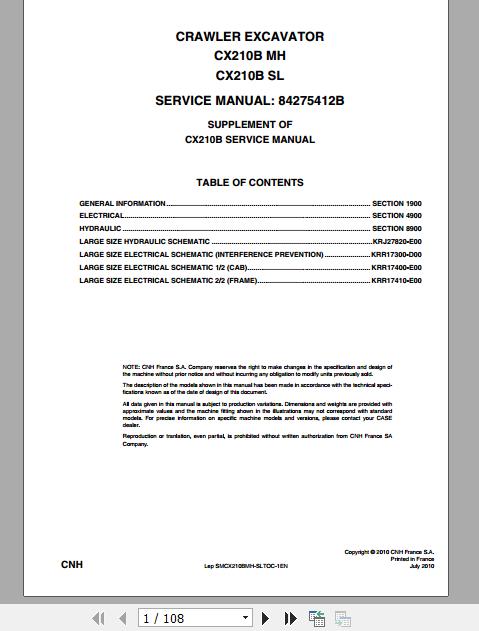 Case Crawler Excavator CX210B MH SL Service Manual_84275412B_A4