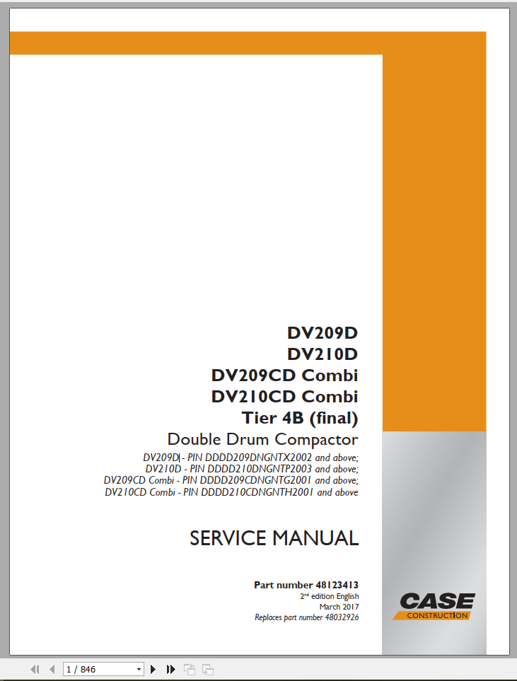 Case Double Drum Compactor DV209D CD DV210D CD Tier 4B (final) Service Manual