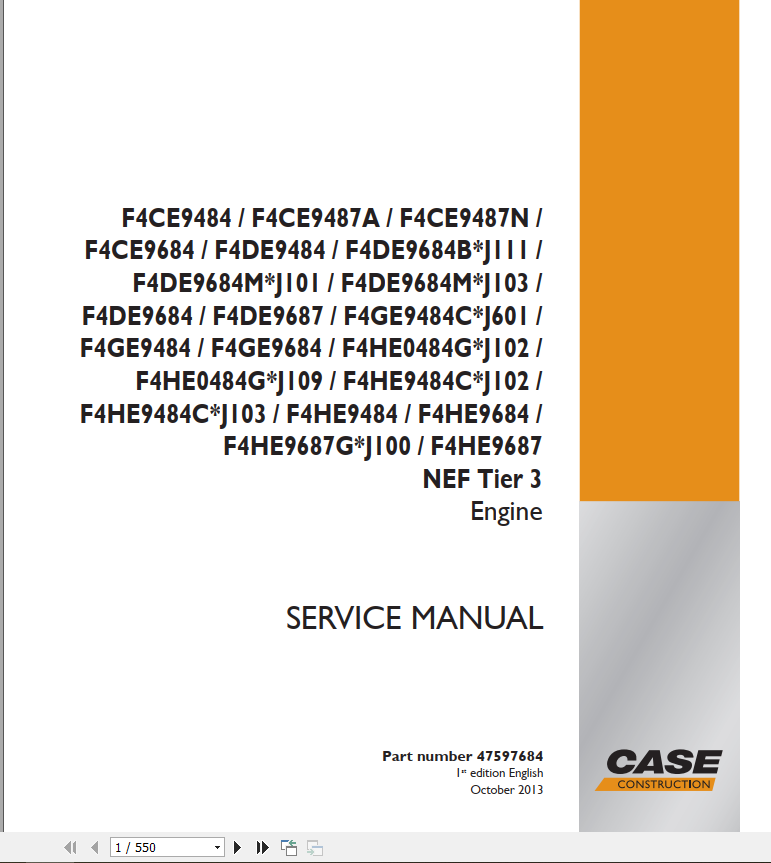 Model: Case Engine CNH F3DE, F3DF Tier 4
