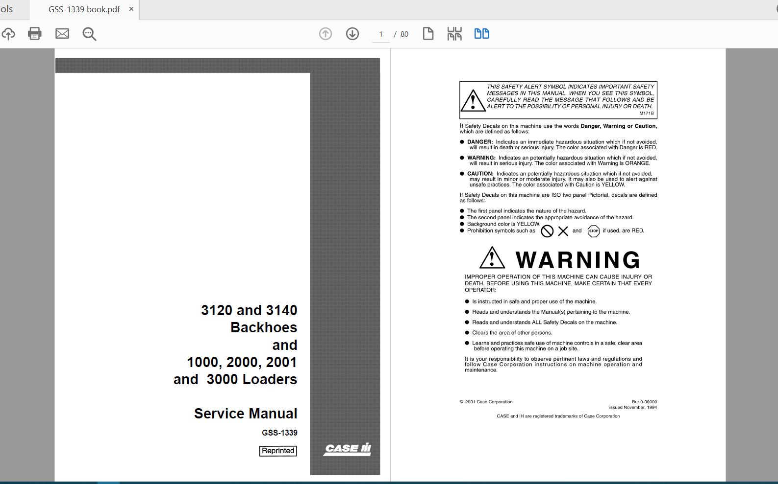 Case IH Tractor 3120 and 3140 Backhoes 1000 2000 2001 3000 Ldrs Service Manual_GSS-1339