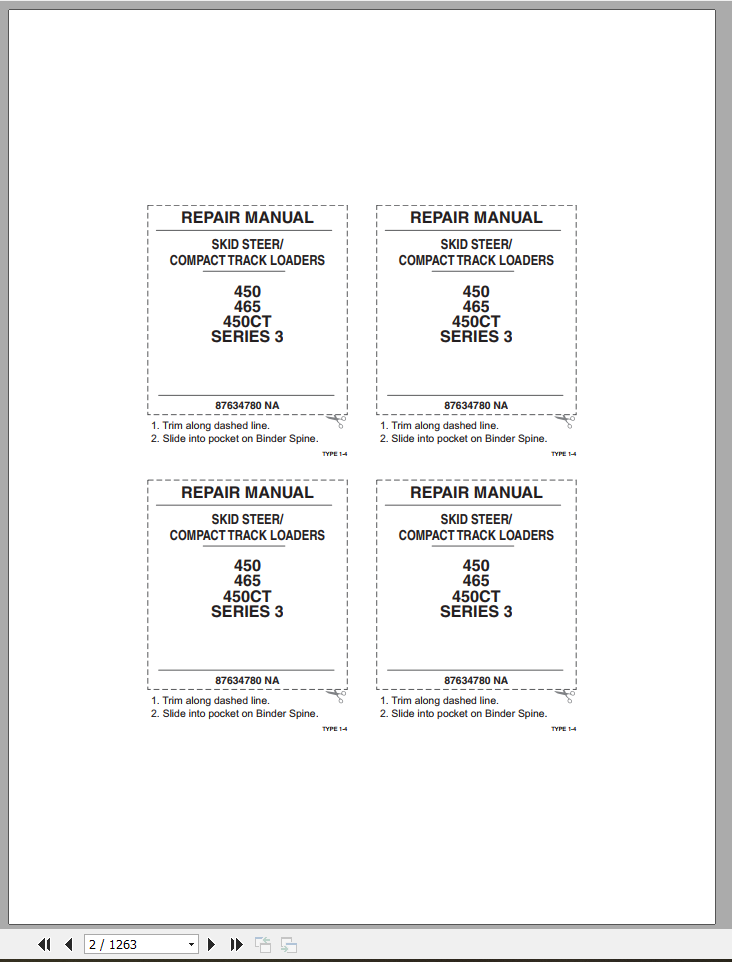 Case Skid Steer Compact Track Loader 450 CT 465 SERIES 3 Repair Manual_87634780NAR0