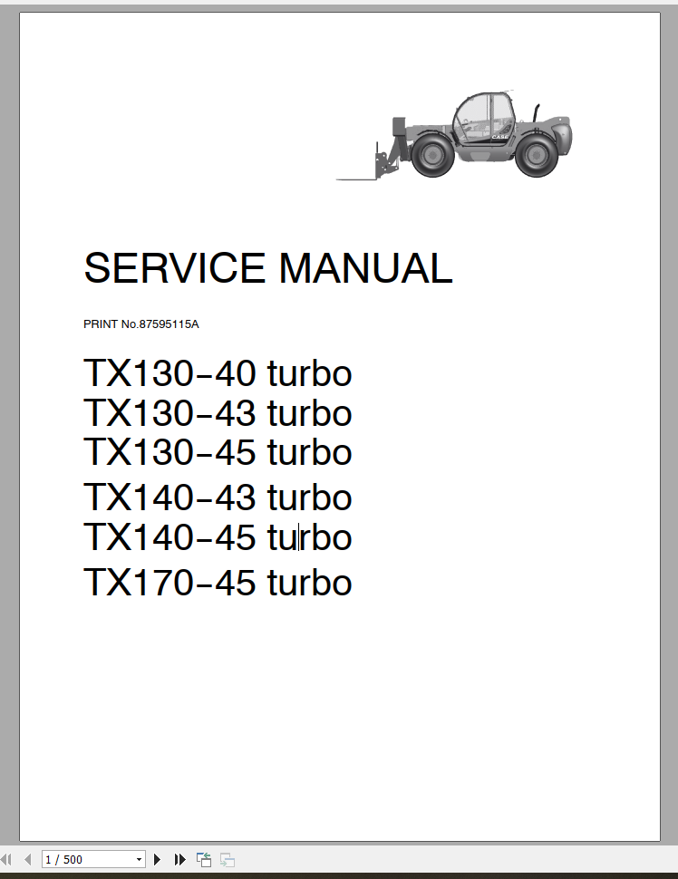 Case Telehandlers TX130 45 TX140 45 TX170 45 TURBO Service Manual_87595115A