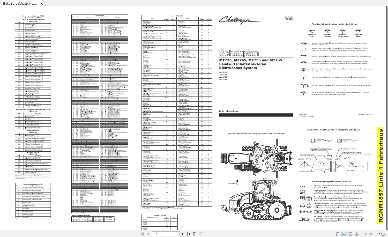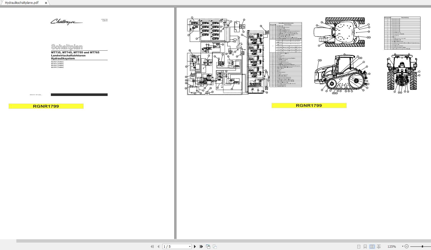 Model: Challenger MT735 MT745 MT755 MT765 MT745B MT755B MT765B Elektrische & Hydraulik Schaltplane
