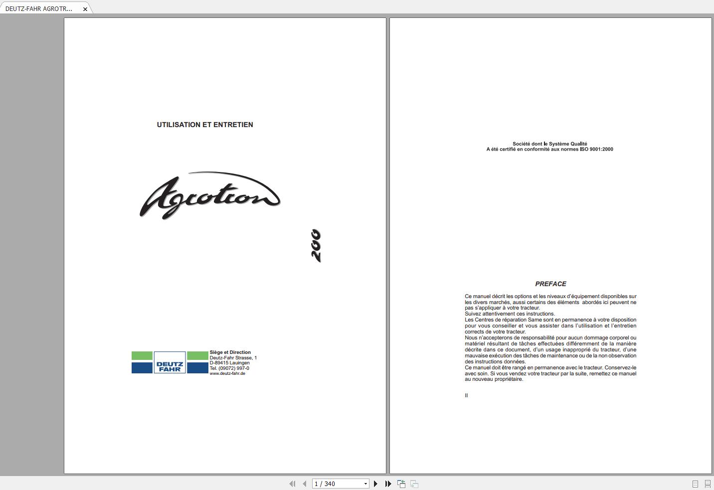 DEUTZ-FAHR AGROTRON 120 130 150 Operator’s Manual FR