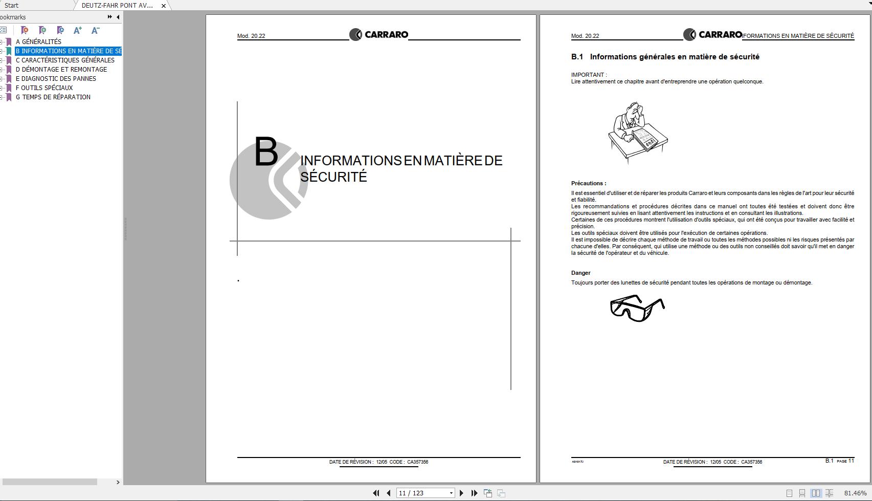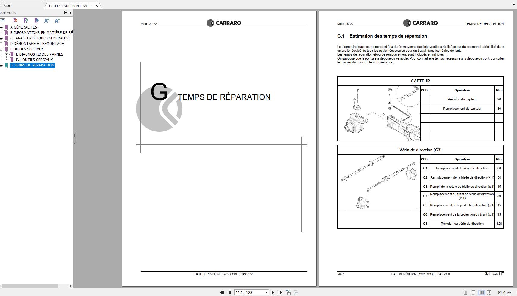 DEUTZ-FAHR PONT AVANT AGROTRON 120 130 (CARRARO 20.22) Workshop Manual FR