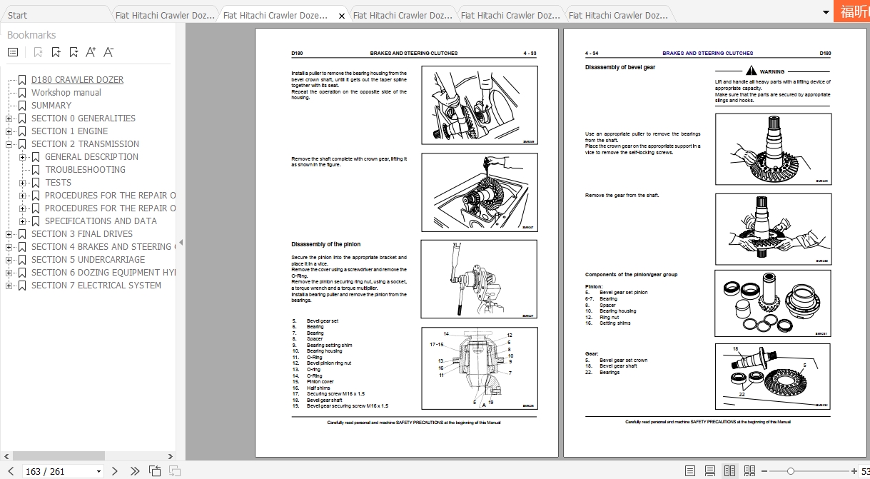 Fiat Hitachi Crawler Dozer D180 EN FR IT ES DE Workshop Manual PDF