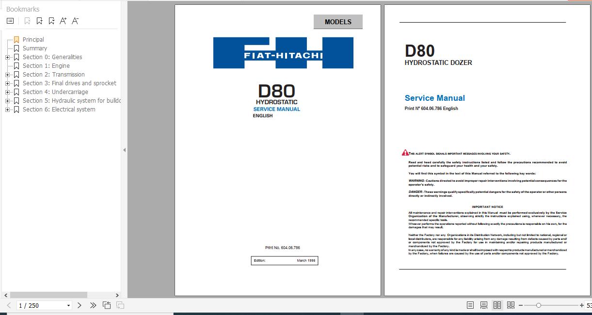 Fiat Hitachi Crawler Dozer D180 LGP Workshop Manual IT PDF