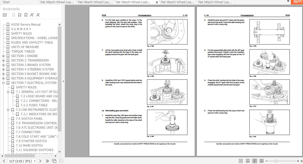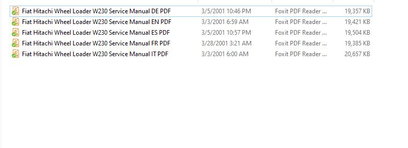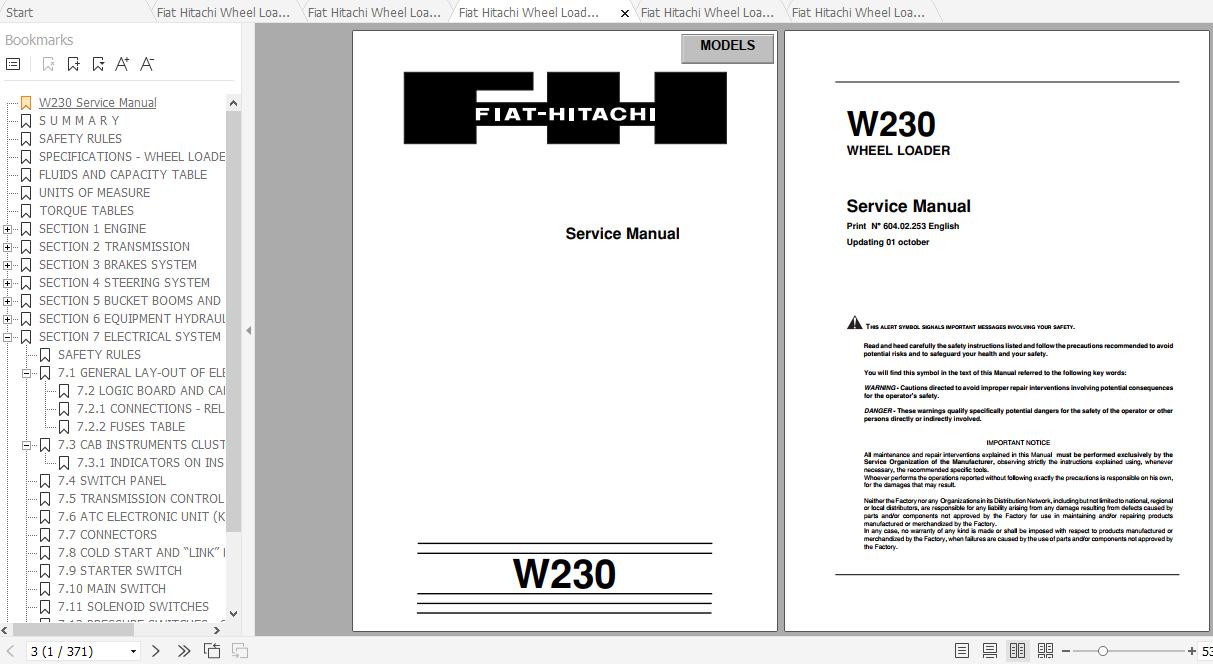 Fiat Hitachi Wheel Loader W230 EN FR IT ES DE Service Manual PDF