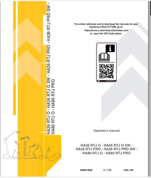 Haulotte Articulated Boom Lift HA26RTJO HA80RTJO E11.20 Maintenance Book & Operator’s Manual