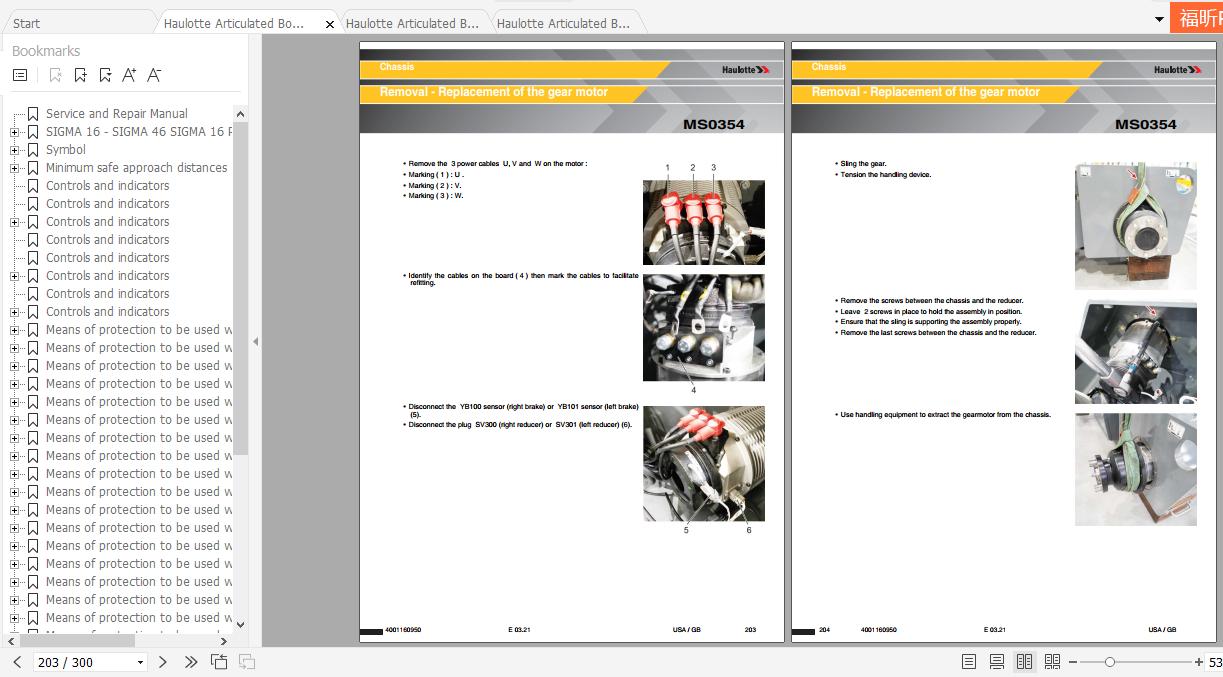 Haulotte Articulated Boom Lift SIGMA 16-SIGMA 46 PRO E03.21 Service & Repair Manual 4001160950 EN