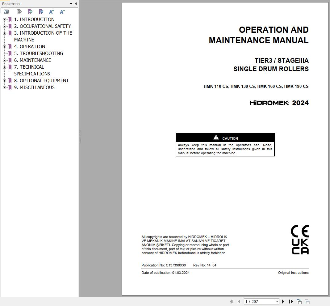 Hidromek HMK 102B MAESTRO Spare Parts Catalog A70001- HUSCO EN Turkish PDF