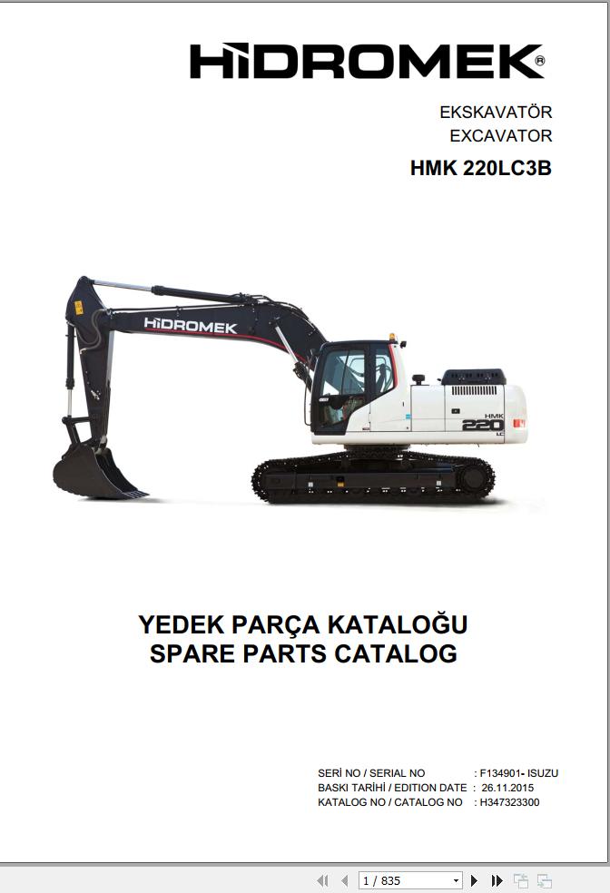 Hidromek HMK 140 LC4 Spare Parts Catalog E130901- Izusu Engine EN Turkish PDF