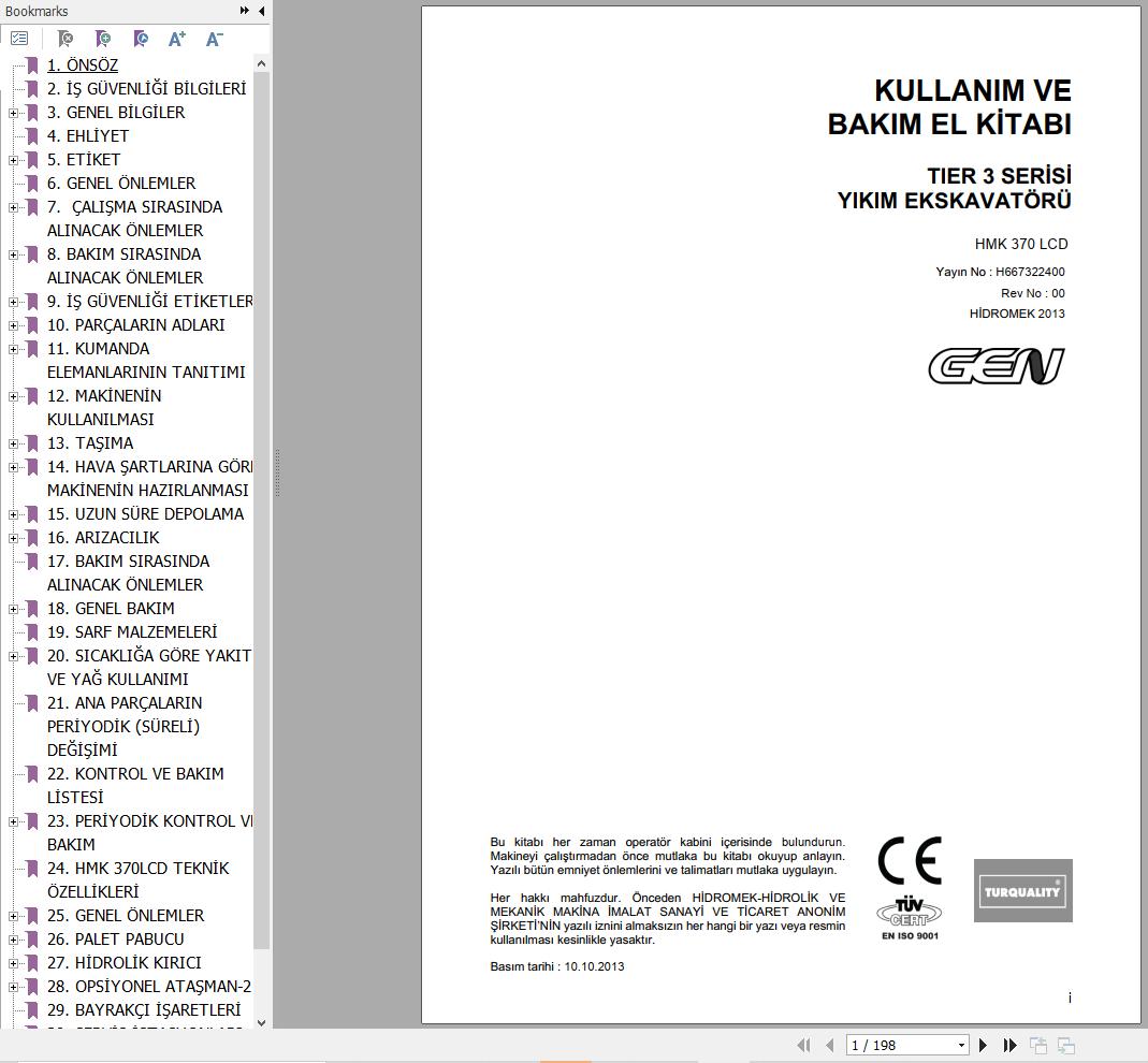 Hidromek HMK 220 LC-2 LR Spare Parts Catalog 6134001- Mitsubishi Engine EN Turkish PDF