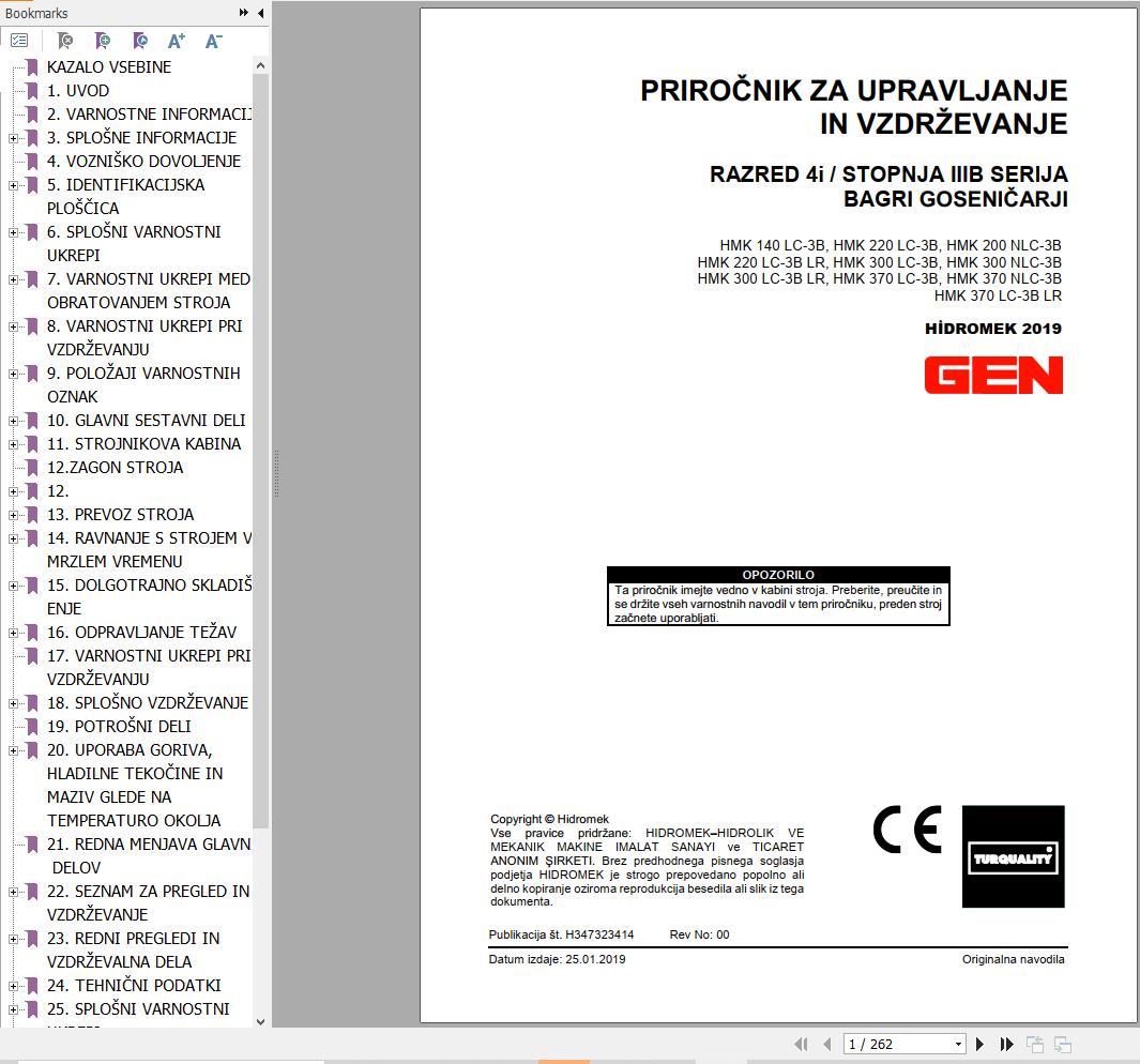 Hidromek HMK 220 LC Spare Parts Catalog 2134001- EN Turkish PDF