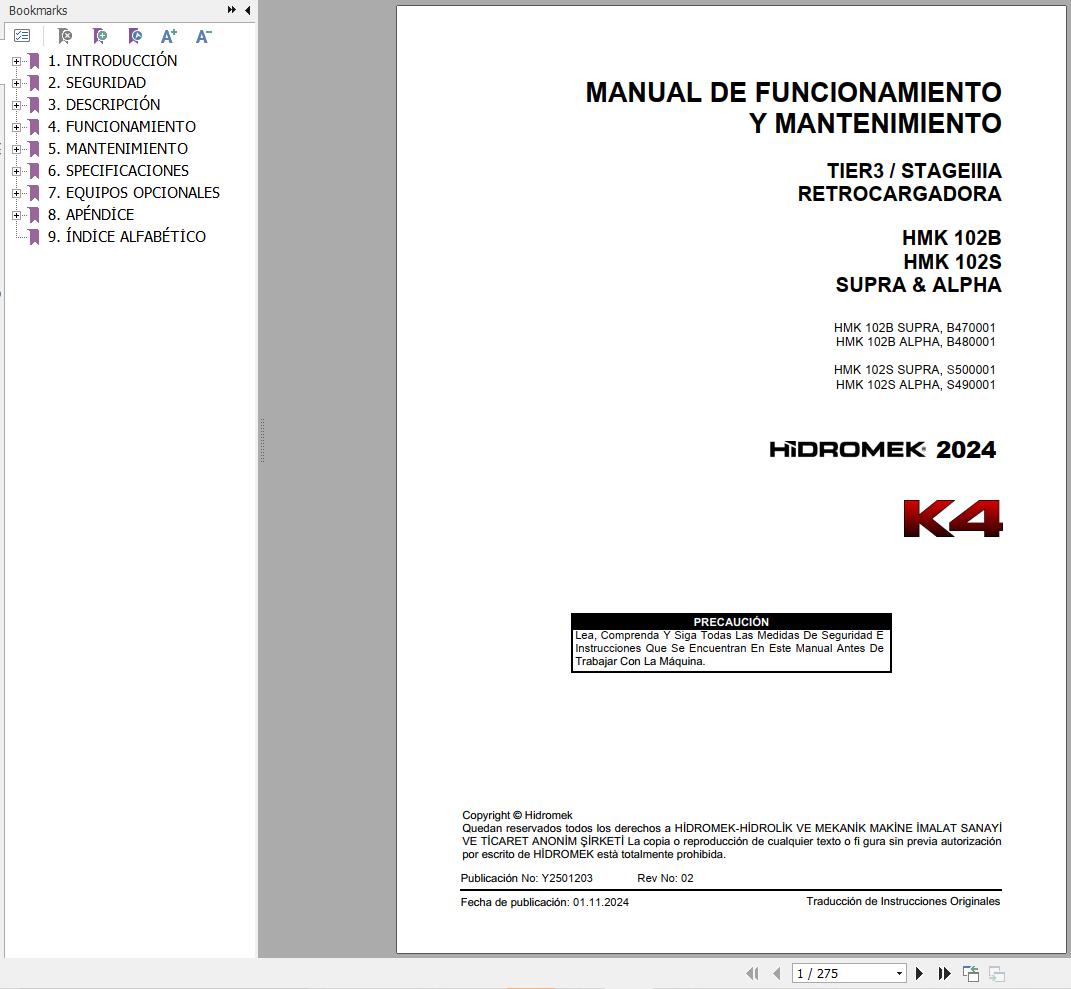 Hidromek HMK 300 LC4 Spare Parts Catalog D125901- Izusu Engine EN Turkish PDF