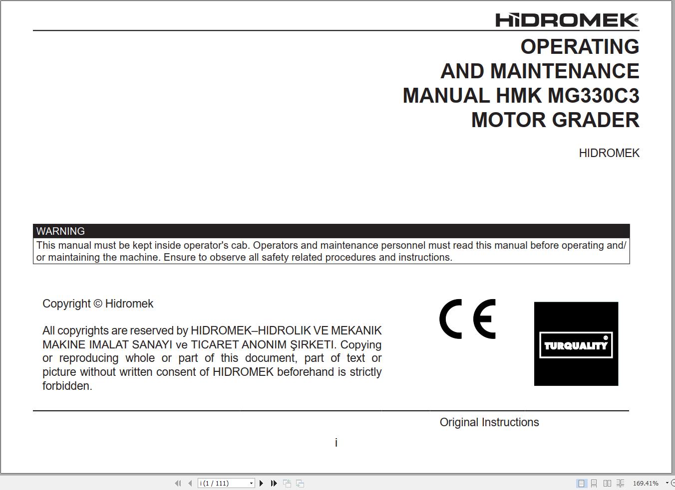 Hidromek HMK102B Operation and Maintenance Manual Y1012370 Turkish PDF