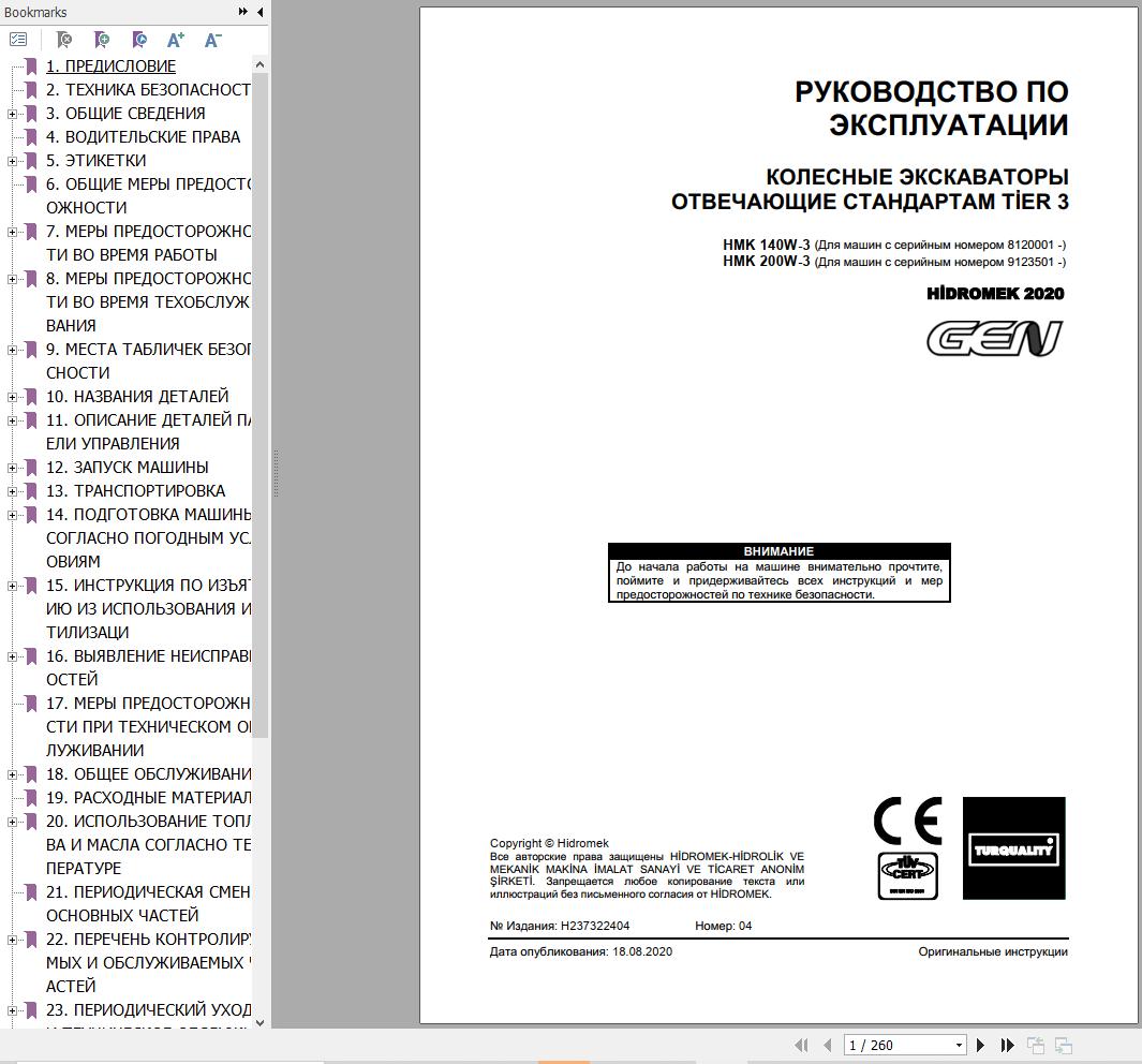 Hidromek HMK640WL Operation and Maintenance Manual L227200400 Turkish PDF
