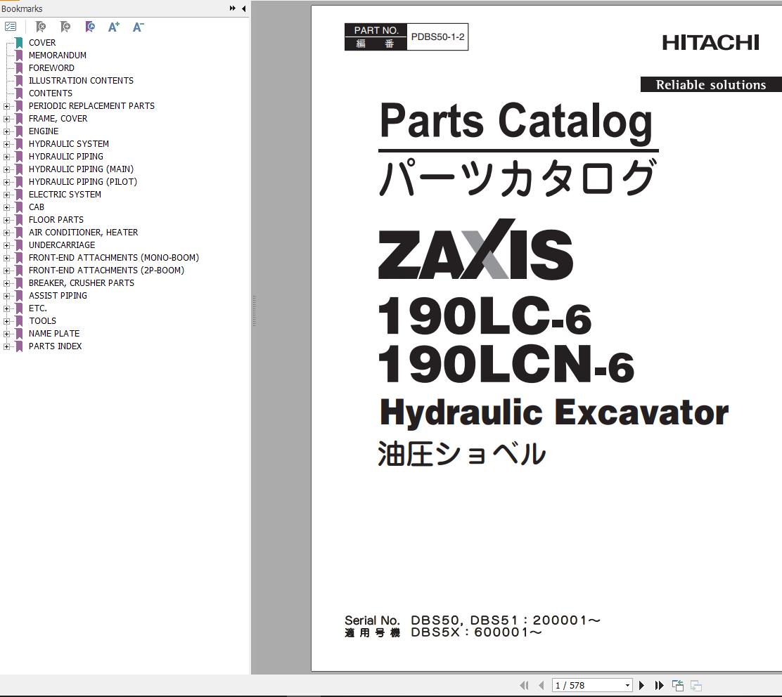 Hitachi LX200 Equipment Components Parts Catalog P43A-E1-1