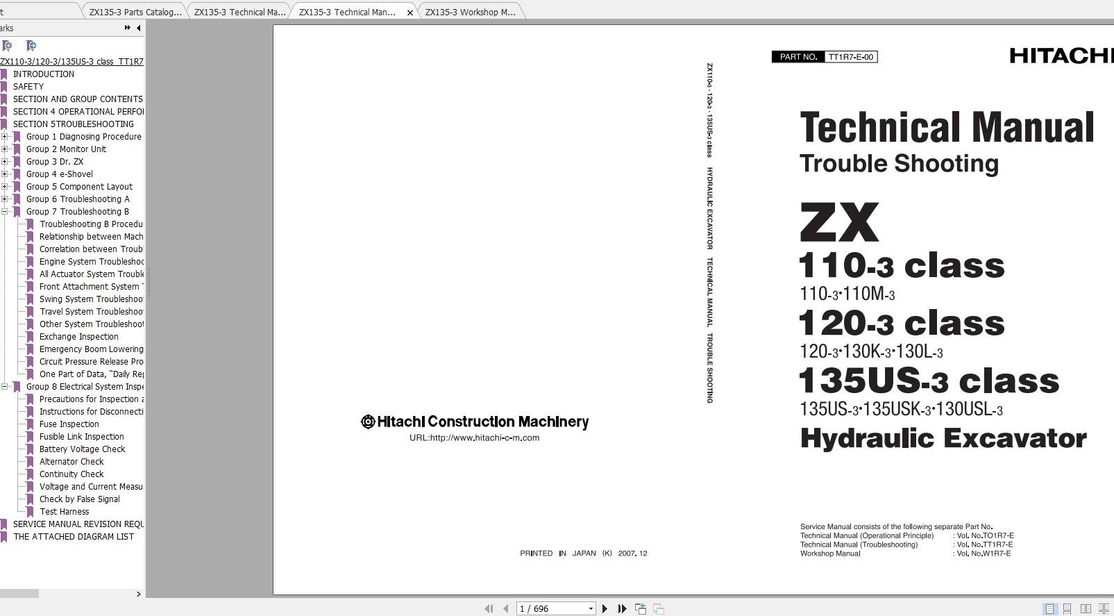Hitachi Wheel Loader ZW20L Parts Catalog P4EN-1-2 (293 Pages)