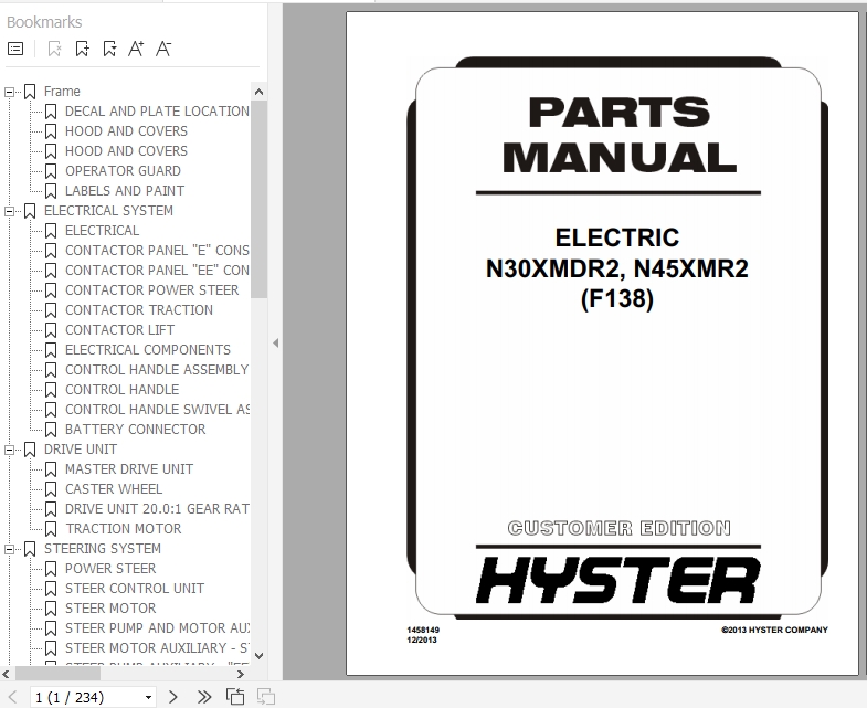Hyster Internal Combustion Engine Trucks Repair Service Manuals 06.2022 Class 5