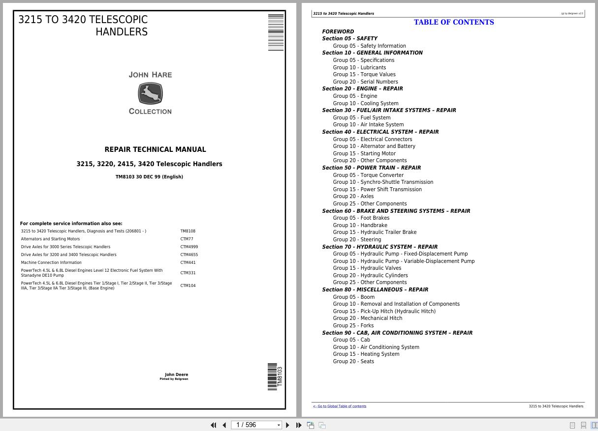 John Deere Track Feller Buncher Harvester 853JH 903JH 909JH Operation and Test Manual TM10766