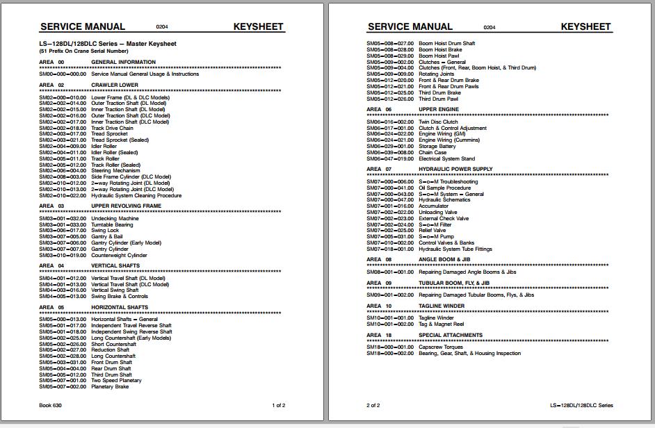 Linkbelt Lattice Boom Crawler Crane LS-128DL LS-128DLC Service Manual
