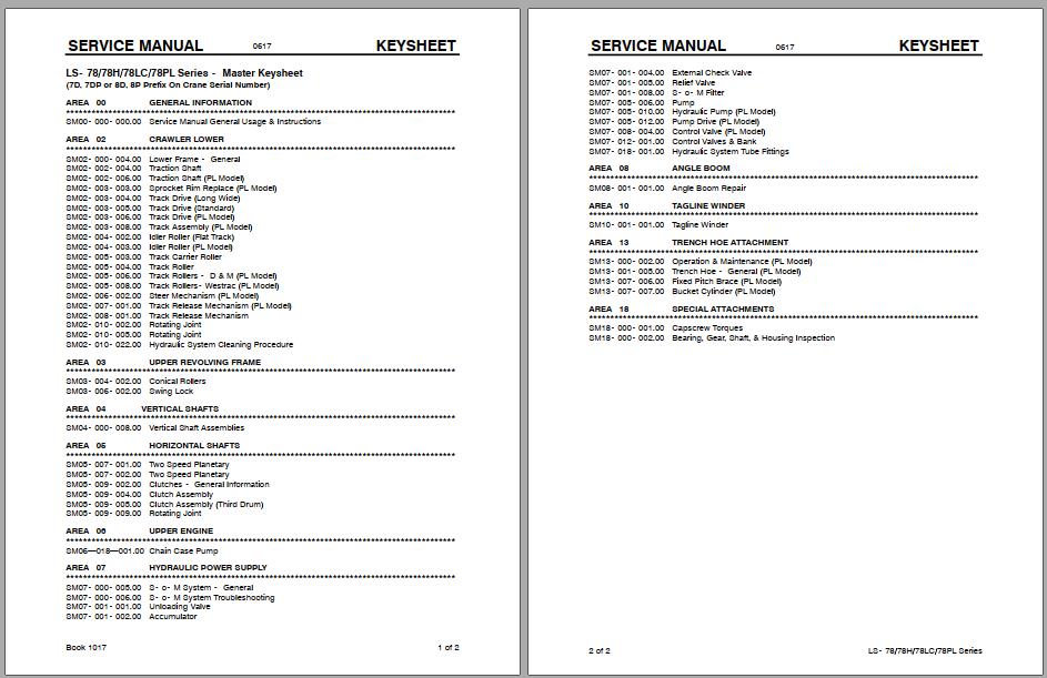 Model: Linkbelt LS-78 LS-78H LS-78LC LS-78PL Crane Service Repair Manual