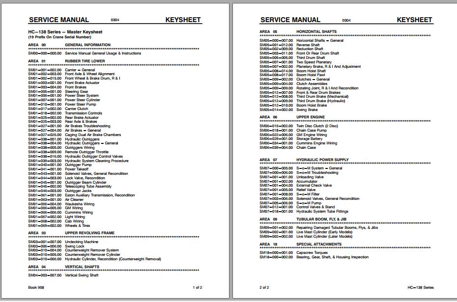 Model: Linkbelt HC-138 Crane Service Repair Manual