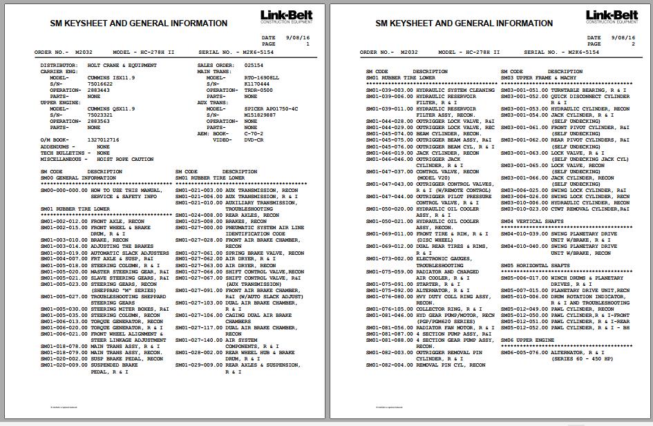 Model: Linkbelt HC-278H II Crane Service Repair Manual