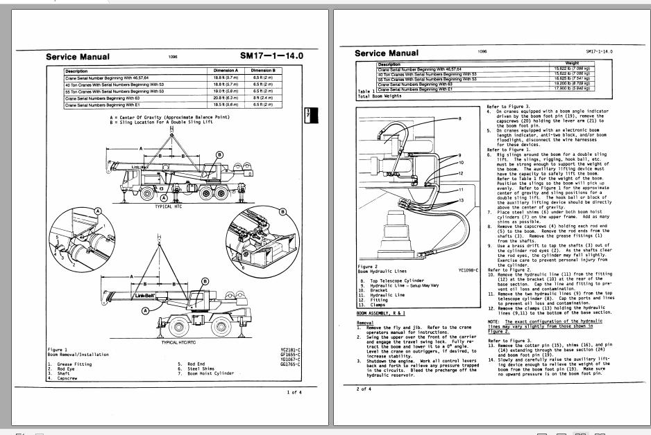 Linkbelt Telescopic Boom Truck Crane HTC-1055 HTC-1060 Service Manual