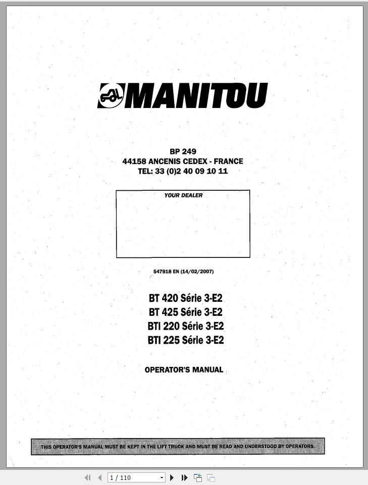 Manitou MLT960 H140 ST3B, MLT-X960 H140 ST3A Repair Manual 64490EN