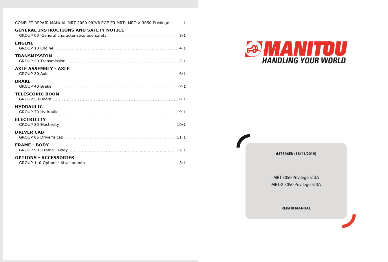 Model: Manitou MT MLT 735 741 742 1030 1035 S2-E2 S3-E2 TeleHandlers